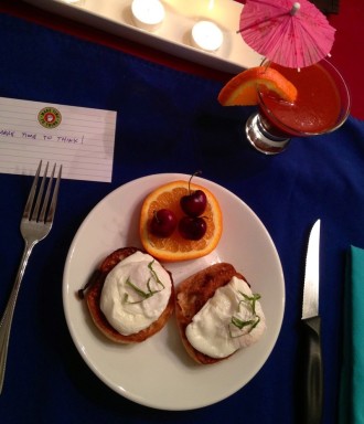 tomato and sautéed peaches with Greek yogurt.